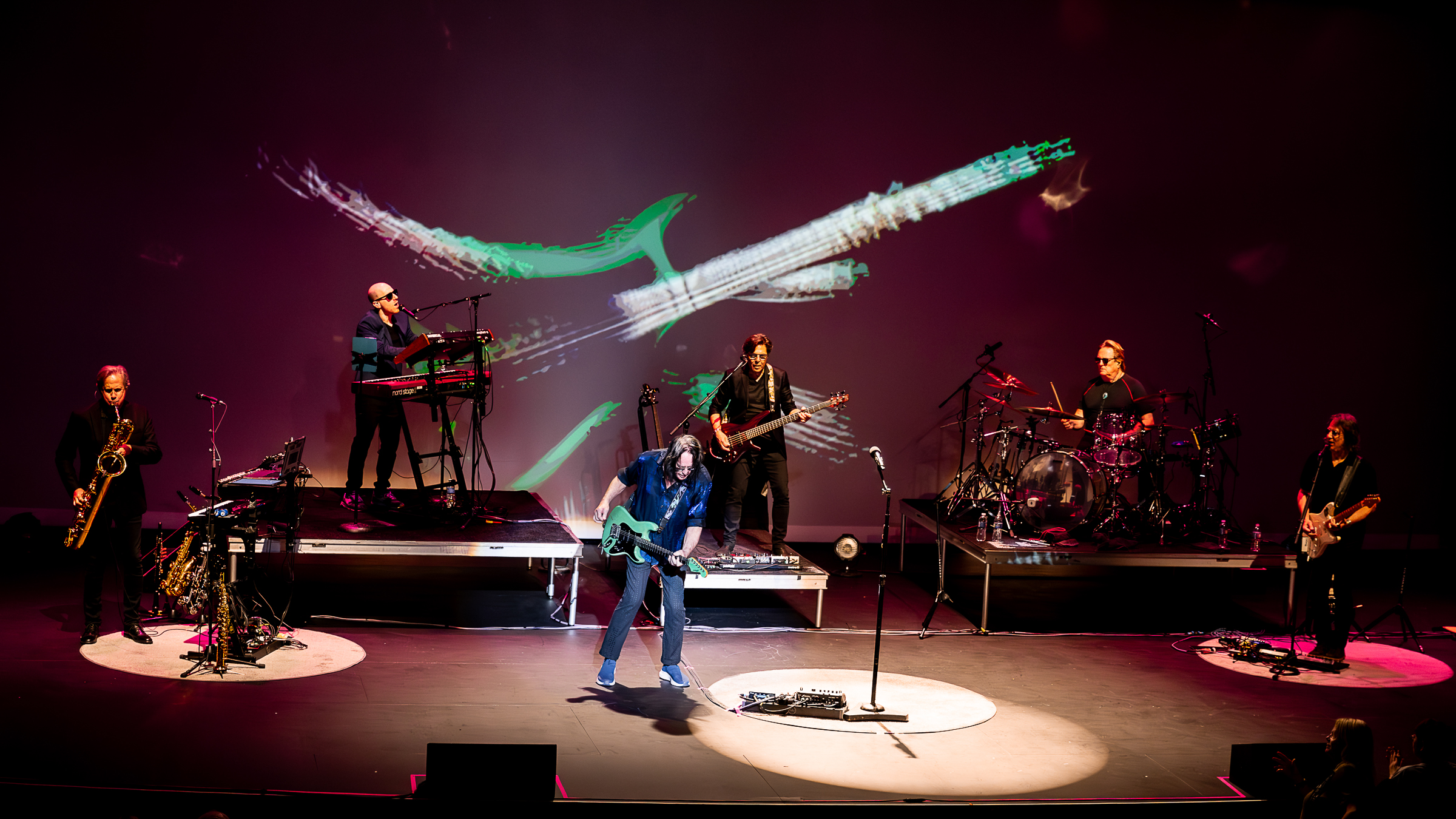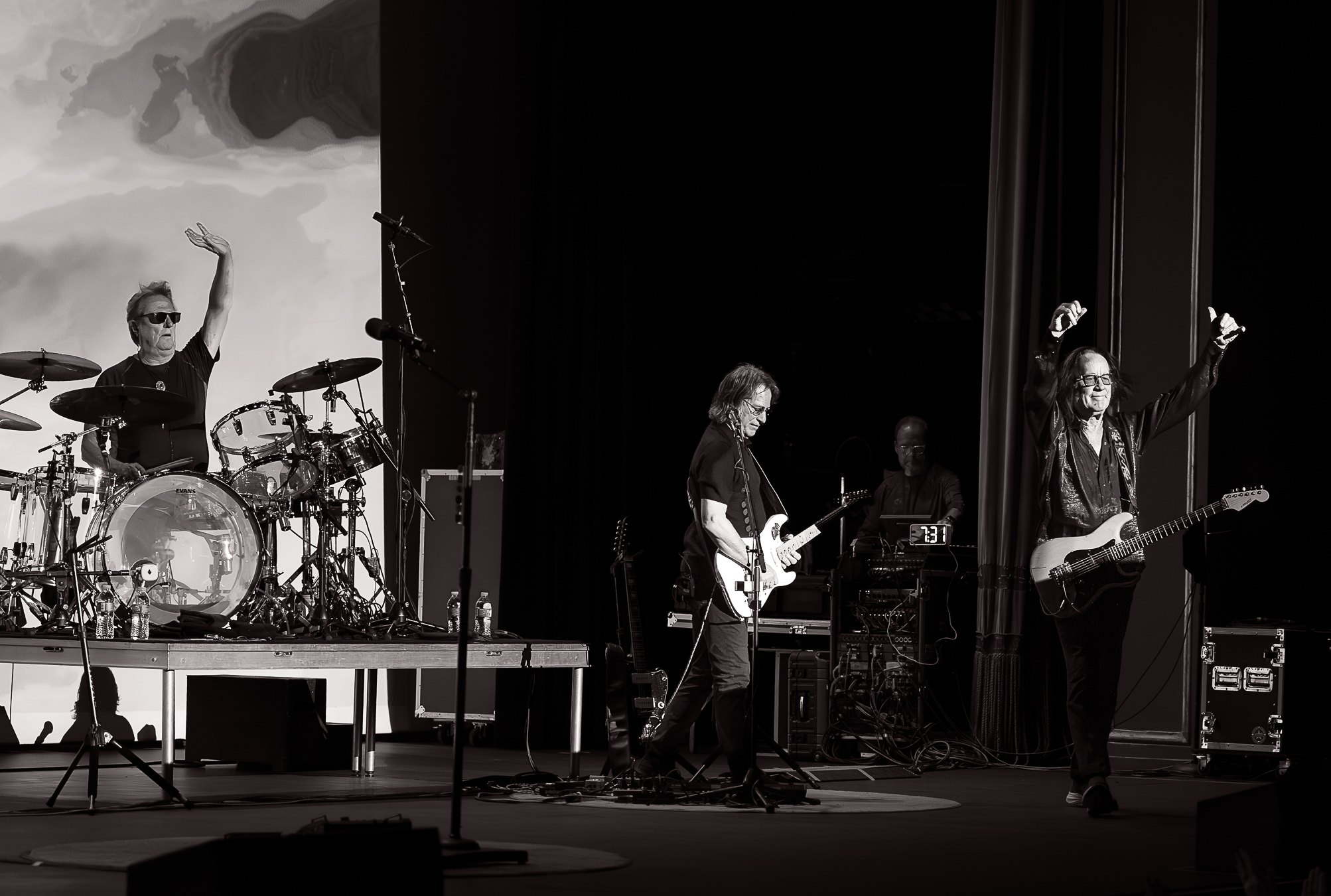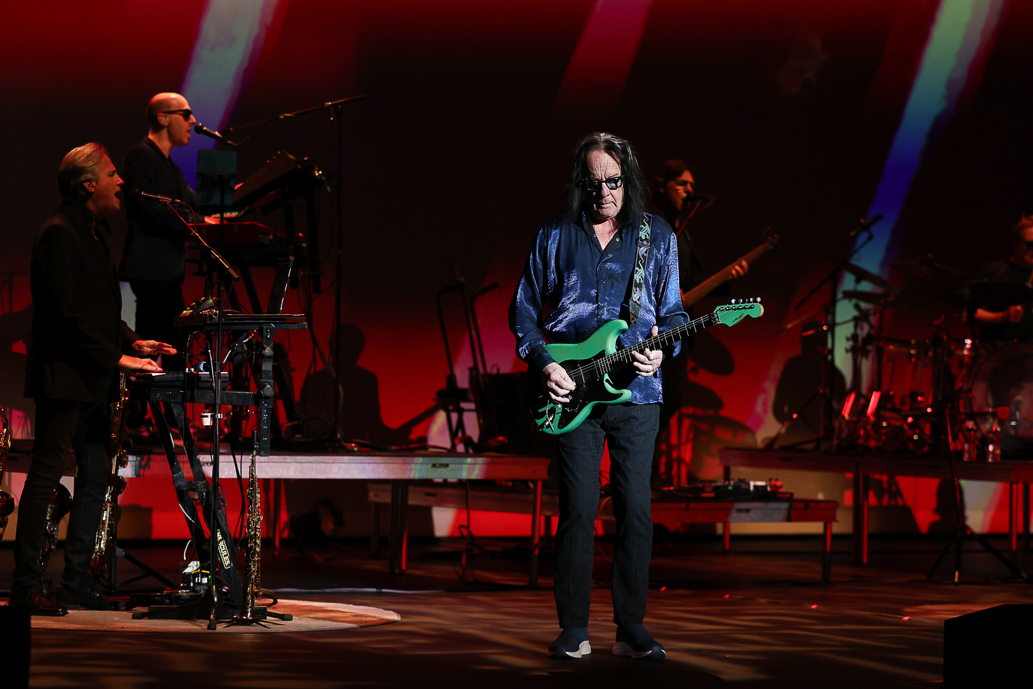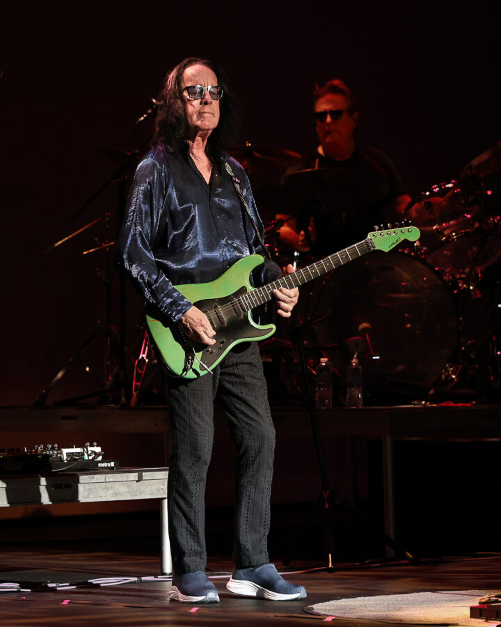 Particular standouts included “I Stood Up” from the Liars album, “Hit Me Like a Train” and “Buffalo Grass” from One Long Year, and a beautiful rendition of “Lost Horizon” which appeared on A cappella. Rundgren’s solid vocals and stellar guitar work were front and center. He was accompanied by his long-time tour mates, Kasim Sultan on bass, and Prairie Prince on drums. The band was rounded out by Bruce McDaniel (guitar), Gil Assayes (keyboards), and Bobby Strickland (horns).