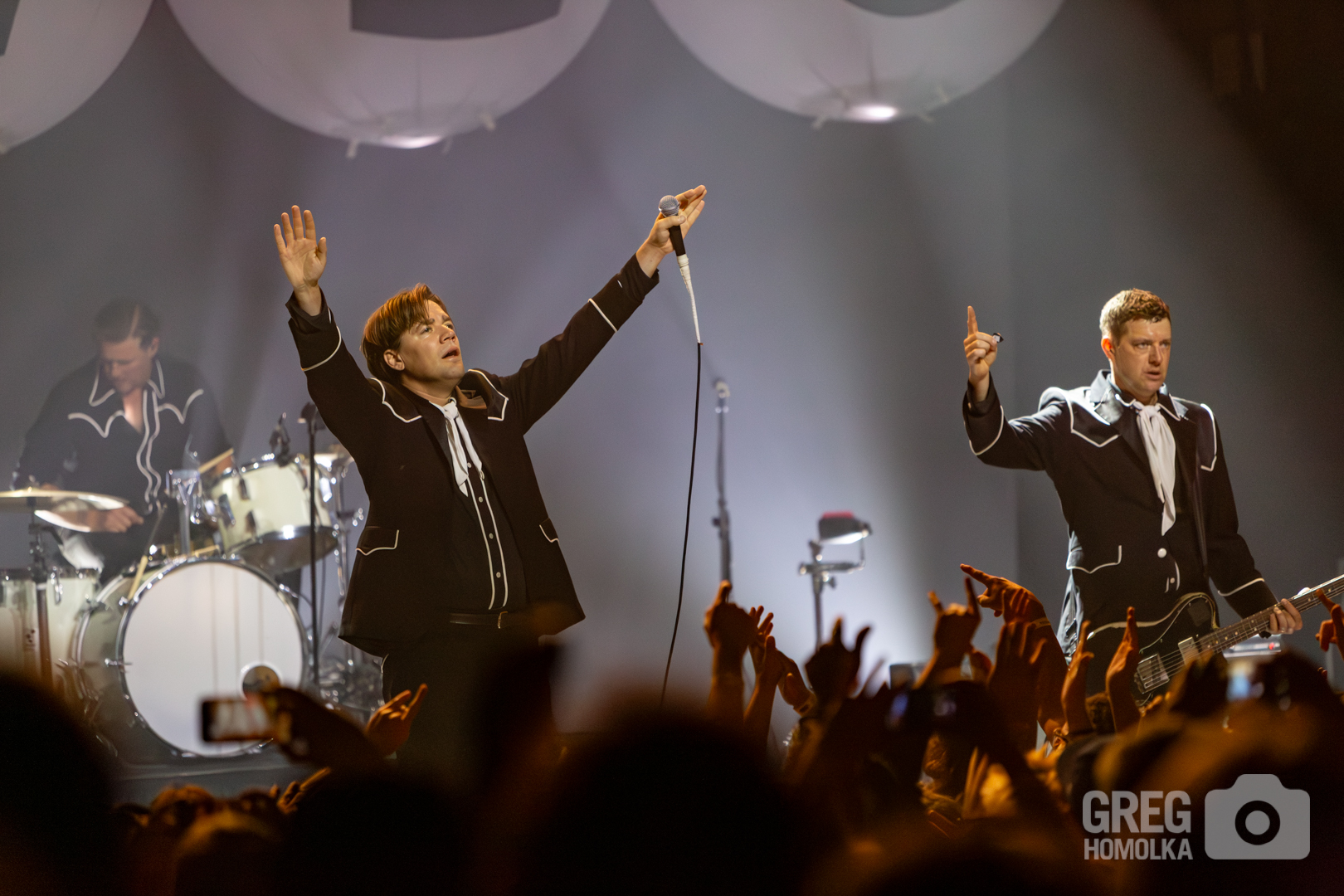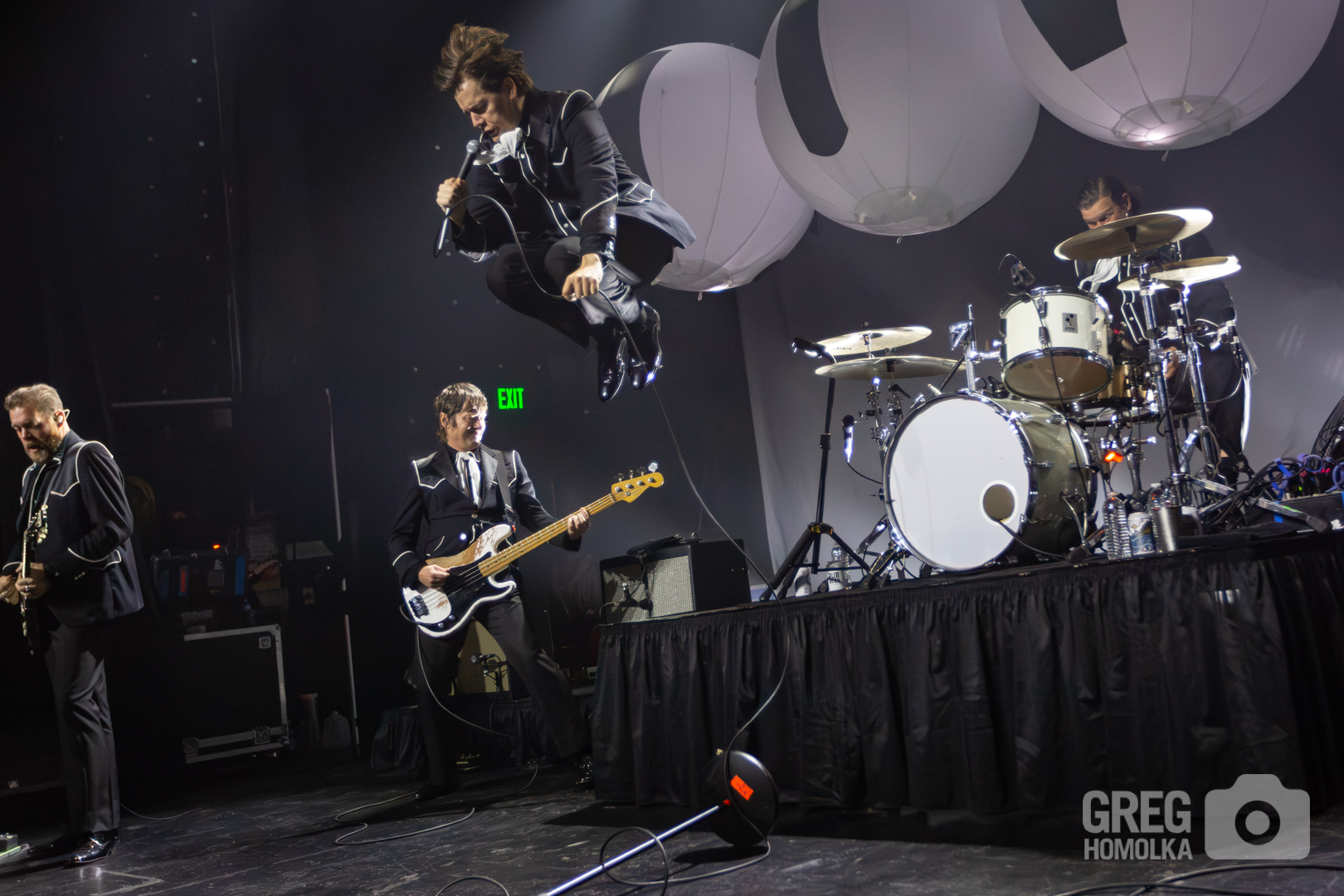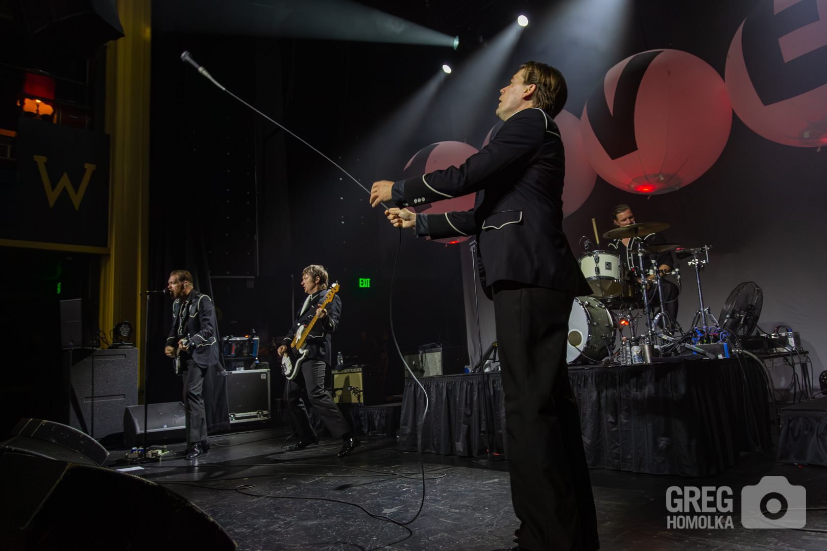 In his perennial quest to rile up the audience and get them spiritually lifted, Almqvist commanded, “You bought tickets a long time ago and it sold out – act like it!” The fans reciprocated by pumping fists and jumping up and down to the point that you could practically feel the floor of this former high school auditorium shaking when they launched into the exuberant thrashing rock of “Paint A Picture” and versions of “Main Offender” and “Born a Rebel” that howled with rockabilly fervor. “Bogus Operandi” was a rush of intensity, while “Hate to Say I told You So” was prefaced with a scorchingly perfect rant about not using your phones to take pictures and dancing to the music instead. Surprisingly, the crowd listened as the band railed through one of their biggest hits only to veer straight into the vicious garage punk fury of “O.C.D.O.D.” “I’m Alive” was a stomping, sinister anthem that had the crowd waving along like members of a fiendish cult as Almqvist bellowed the chorus of “did you miss me, boys and girls.” The answer was a unanimous yes.