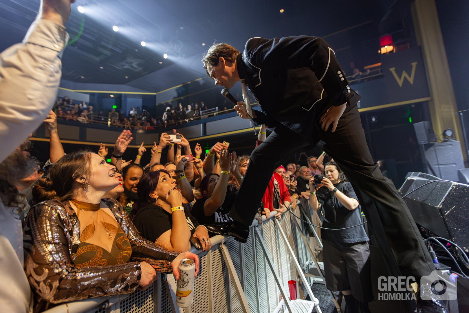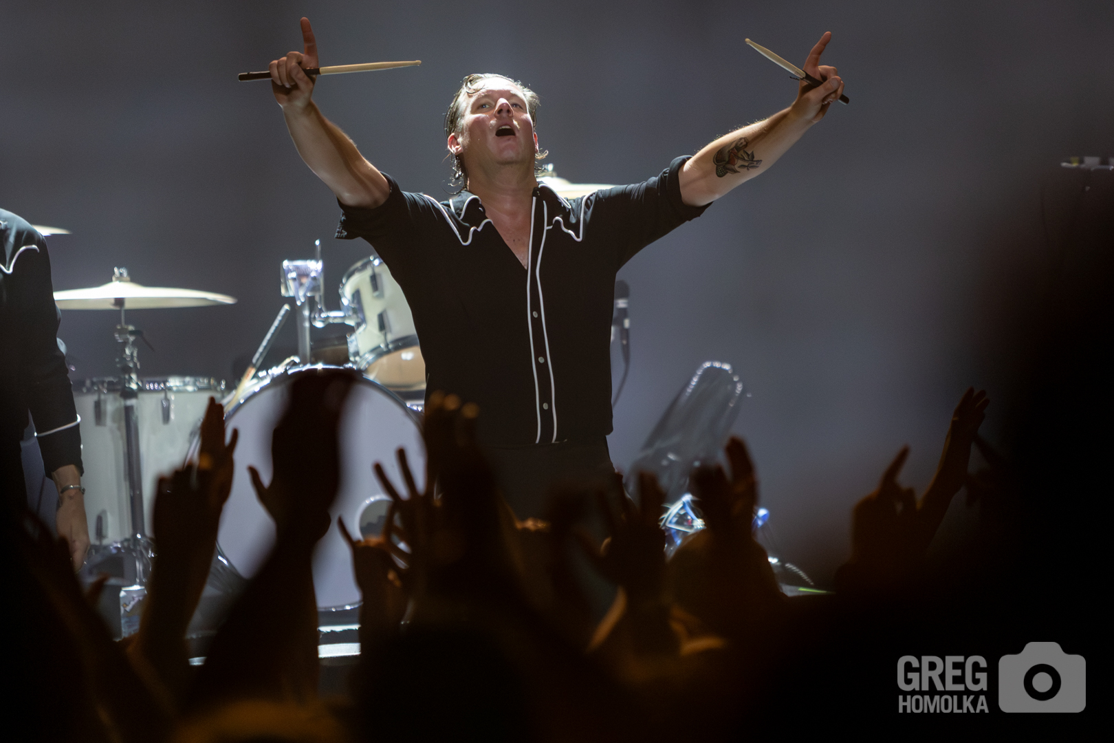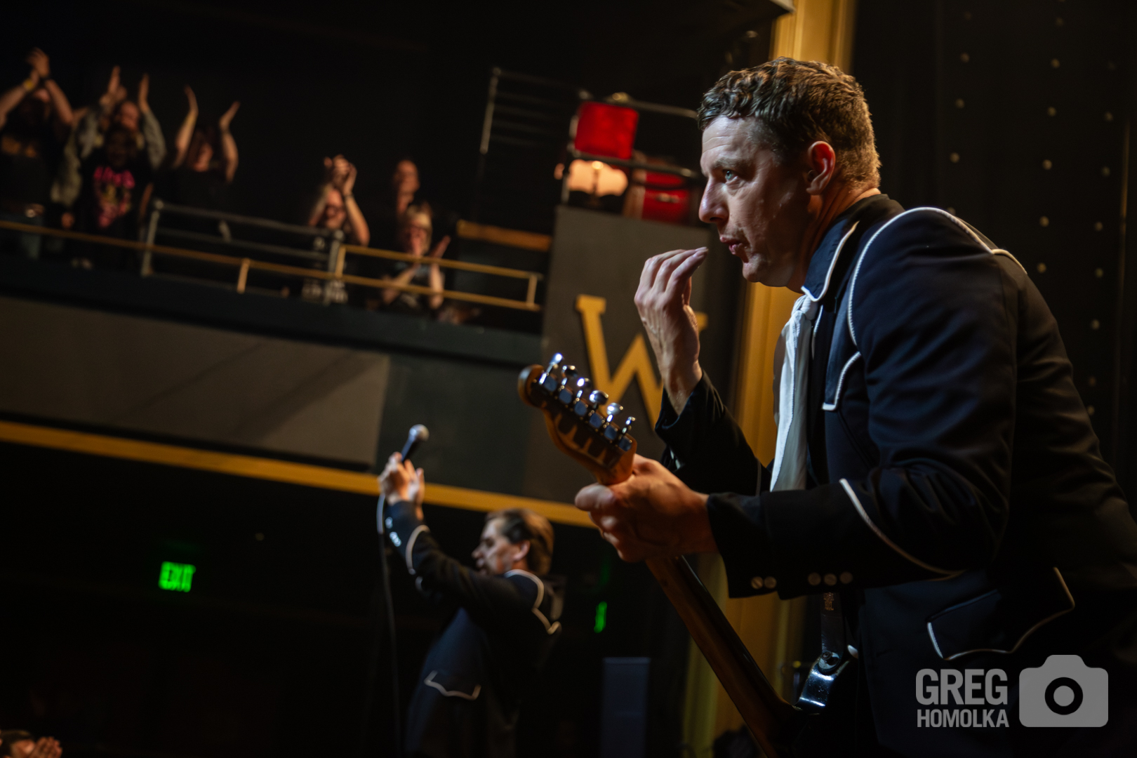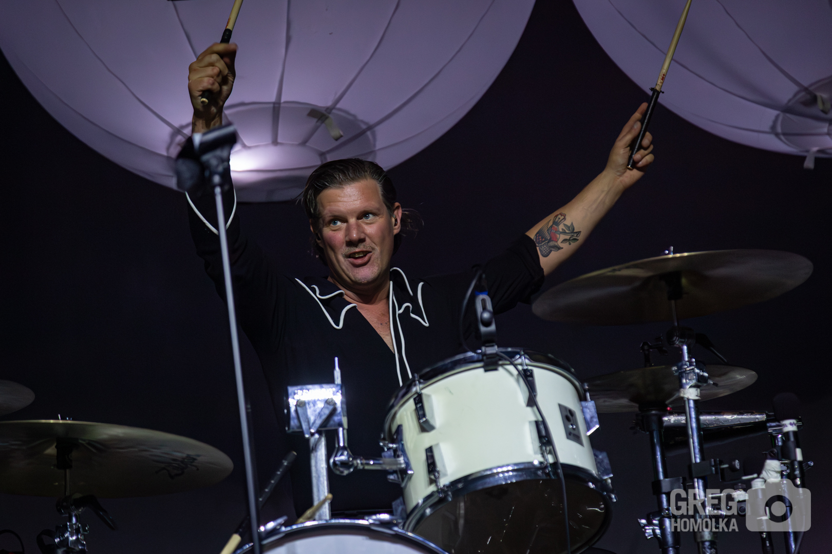 In his perennial quest to rile up the audience and get them spiritually lifted, Almqvist commanded, “You bought tickets a long time ago and it sold out – act like it!” The fans reciprocated by pumping fists and jumping up and down to the point that you could practically feel the floor of this former high school auditorium shaking when they launched into the exuberant thrashing rock of “Paint A Picture” and versions of “Main Offender” and “Born a Rebel” that howled with rockabilly fervor. “Bogus Operandi” was a rush of intensity, while “Hate to Say I told You So” was prefaced with a scorchingly perfect rant about not using your phones to take pictures and dancing to the music instead. Surprisingly, the crowd listened as the band railed through one of their biggest hits only to veer straight into the vicious garage punk fury of “O.C.D.O.D.” “I’m Alive” was a stomping, sinister anthem that had the crowd waving along like members of a fiendish cult as Almqvist bellowed the chorus of “did you miss me, boys and girls.” The answer was a unanimous yes.