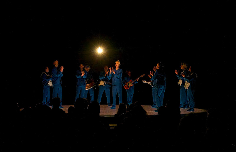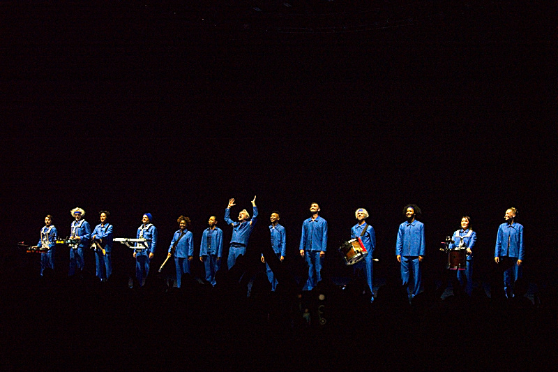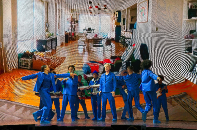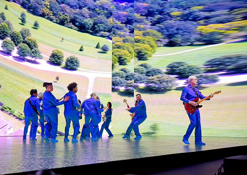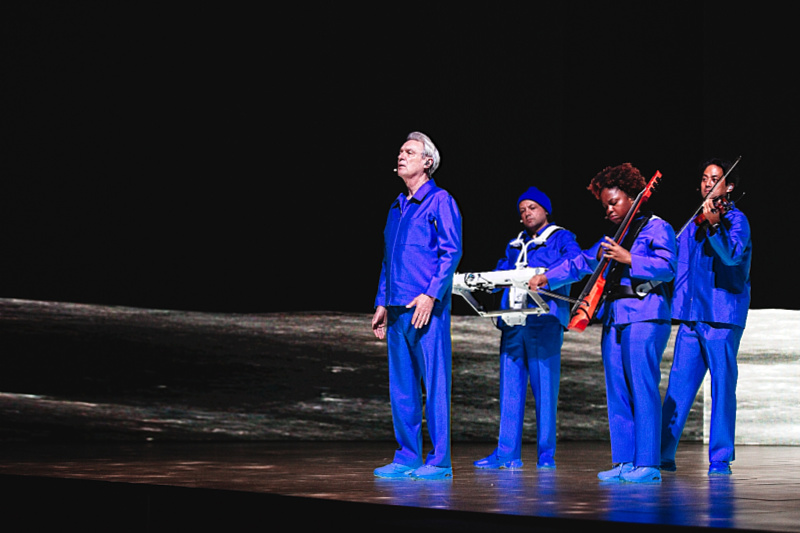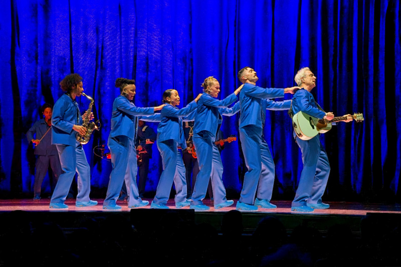 The foundational design philosophy remains gloriously intact: all cables, risers, drum kits, and typical rock paraphernalia have been banished. Thirteen musicians, singers, and dancers are free to roam, dressed identically in crisp, deep blue monochromatic suits. This ensemble, many of whom are veterans of the American Utopia run, features influences from the Ghost Train Orchestra and carries their instruments wirelessly, ensuring they are never tethered to one spot. This mobility transforms the stage from a fixed platform into a kinetic grid, allowing the collective movements to serve as both the visual centerpiece and the rhythmic pulse of the performance. The aesthetic choice champions the human element, making the musicianship itself the only indispensable piece of equipment.