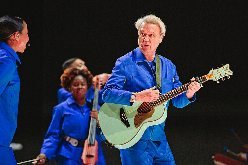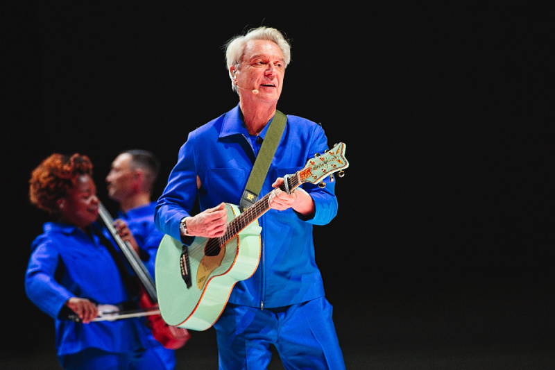 At Boston’s Wang Theater on October 3rd, the set opened with an almost whispered reverence, featuring an acoustic, string-laden rendition of the Talking Heads deep cut, “Heaven.” This quiet start acts as a profound contrast to the explosive, tightly choreographed energy that follows immediately with new material. The lead single, “Everybody Laughs,” is an instant earworm, showcasing the complex, layered arrangements inspired by Byrne’s collaboration with the Ghost Train Orchestra. The new material from Who Is The Sky?, such as the buoyant, Latin-tinged “What Is The Reason For It?” proves remarkably effective live, demonstrating a seamless fusion of Byrne’s signature art-pop sensibility with rich, unexpected orchestral flourishes.
