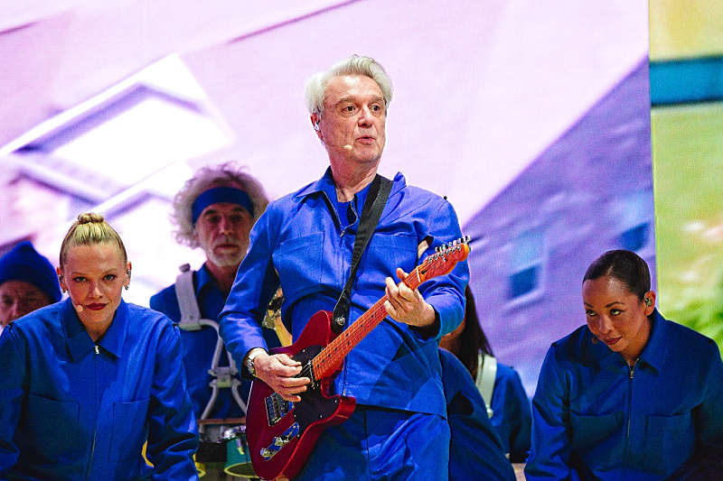 As the main set nears its conclusion, the show hits a fever pitch with a trio of Talking Heads classics that sound entirely reborn. “Life During Wartime” is delivered with blistering, untamed energy, as the band circles and lunges in perfect, militaristic synchronization. The real surprise is the return of “Psycho Killer,” which Byrne performs alone, initially against a minimal backdrop before the full ensemble joins in, utilizing dramatic shadow play that lends the song a newfound sense of theatrical dread, thrillingly resurrecting a track he had avoided for over a decade.