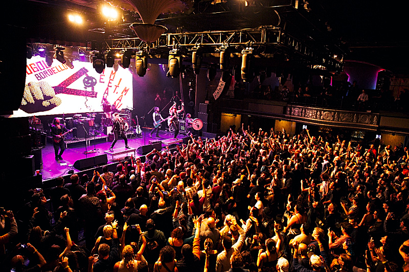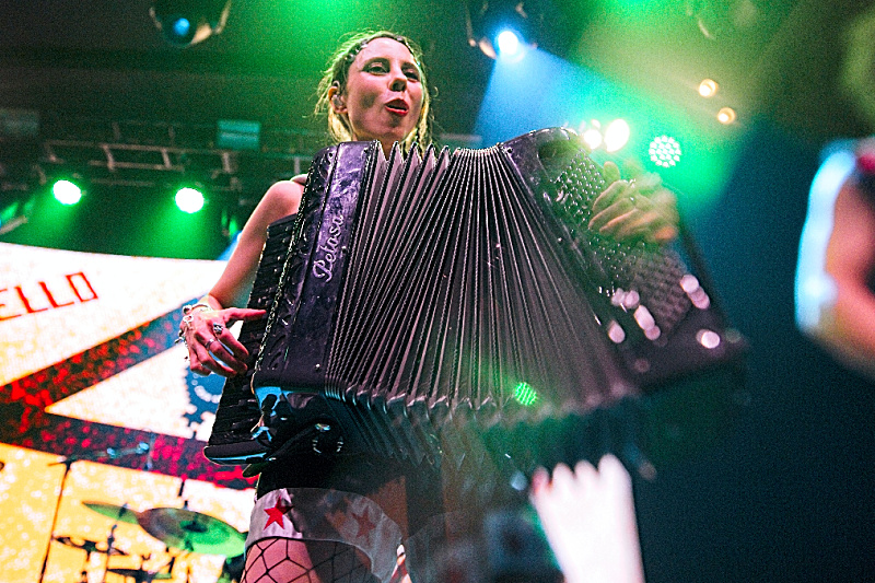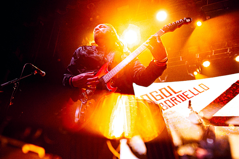 The air in the room was akin to a powder keg ready to blow, long before a single string was even plucked. The floor was quickly packed like a sardine can, almost suffocating, churning with a gaggle of eclectic punks of all ages and walks of life. The moment the house music cut, anticipation was at an all-time high and when the band crept out on to the stage, the audience devolved into a beautiful, jagged kind of chaos, where it didn’t take long for mosh pits to open like whirling sinkholes as total strangers locked arms in a frantic, teeth-gnashing struggle to scream every lyric back at the stage. This is the welcome alchemy of a Gogol Bordello show.