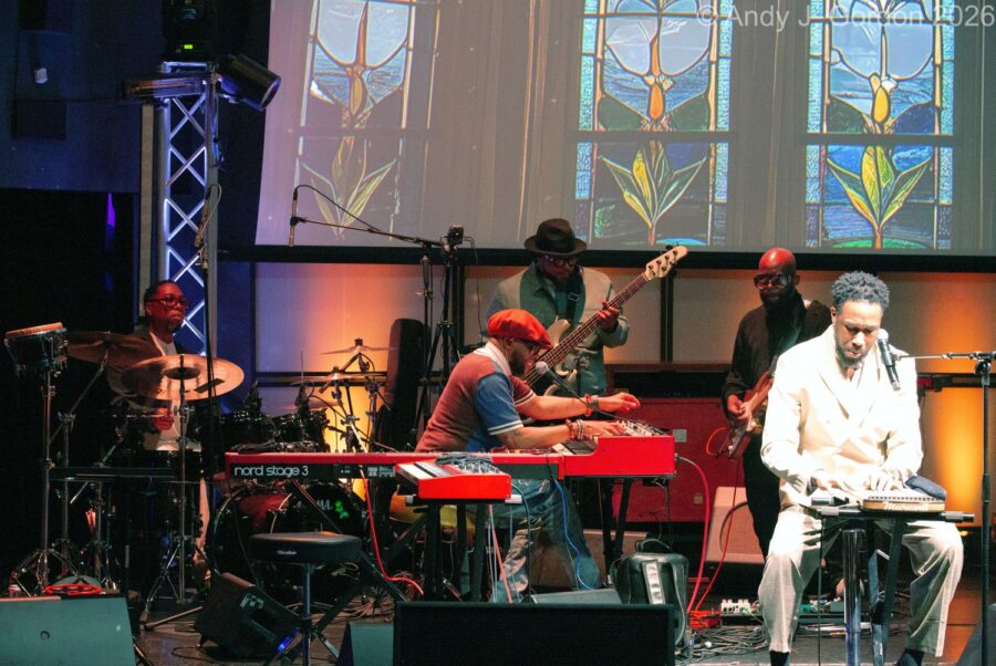 Keyboardist, vocalist, and bandleader Cory Henry won a Grammy in 2025 for his Church album, which contains a collection of songs inspired by his church upbringing and experiences in Brooklyn, NY. He has created a monthly concert series based on that musical inspiration. The series takes place on the last Sunday of each month at The Miracle Theater in Inglewood, CA, and offers a mix of soul, gospel, and jazz presented as part concert, part communal gathering. The show on April 29, 2026, was an uplifting evening of powerful performances that delivered a soulful experience to a sold-out crowd.