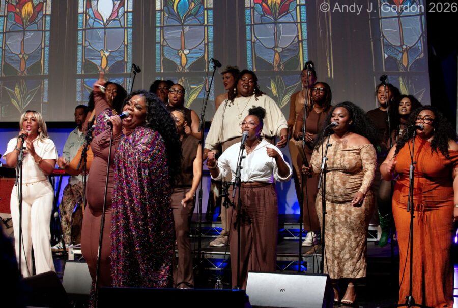 As if that was not enough talent to fill the theater with angelic music, eight more female vocalists from the Apostle Community Choir came onstage to join the other singers. They harmonized on a few more songs before the male vocalists from the choir joined in, and the complete company of musicians, led by Henry, filled the theater with soulful energy. Eventually, the female instrumentalists were replaced by the original quintet members, and Henry led them, along with the full choir, on some of his solo material, including songs from Church. “He Watches Over Me” was an emotional ballad he wrote in January 2025 on the day of the Eaton and Palisades fires, to try to uplift his and everyone else’s spirits. Another moving, inspirational song, “The Promise,” ended the show, with Henry’s powerful vocals supported by the choir’s synchronized, booming harmonies.