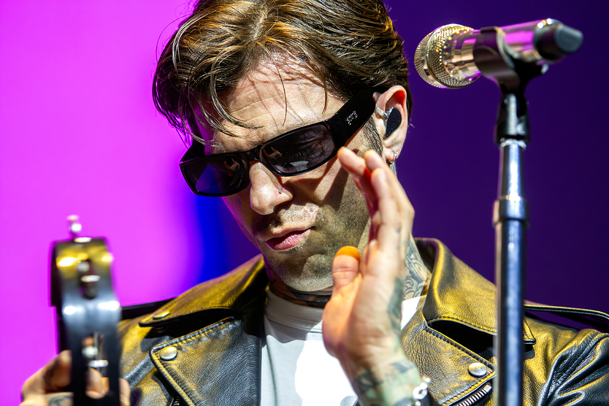From the jump, the California outfit leaned hard into their signature style: moody, high-contrast visuals paired with brooding yet electrifying, guitar-driven sound. Framed as their “Three Act Wourld Tour,” the performance unfolded with a cinematic structure that elevated the night beyond a standard set.